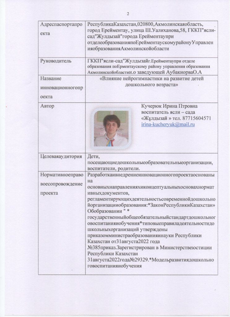 «Мектеп жасына дейінгі балалардың дамуына нейрогимнастиканың әсері»